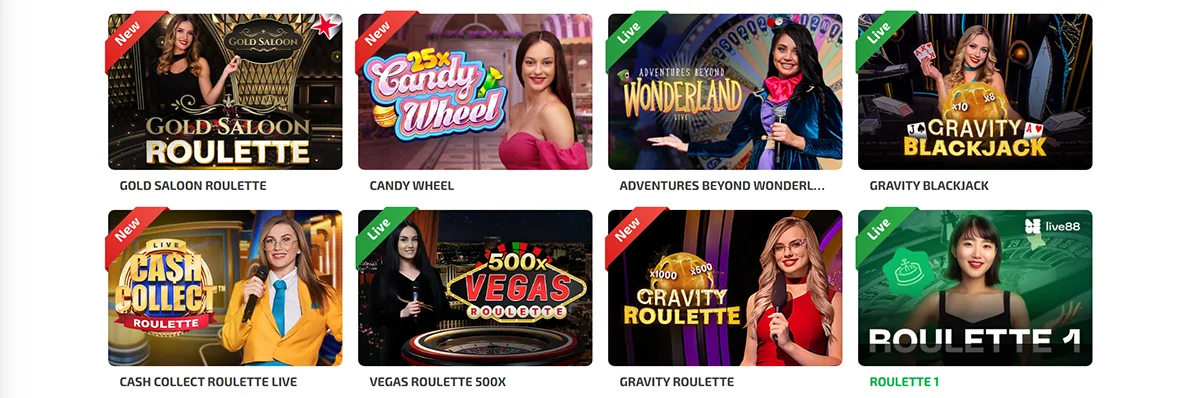 Vous pouvez jouer au blackjack, roulette, baccarat, et poker dans leurs versions traditionnelles et modernes. Chaque jeu est disponible avec différentes limites de mise.