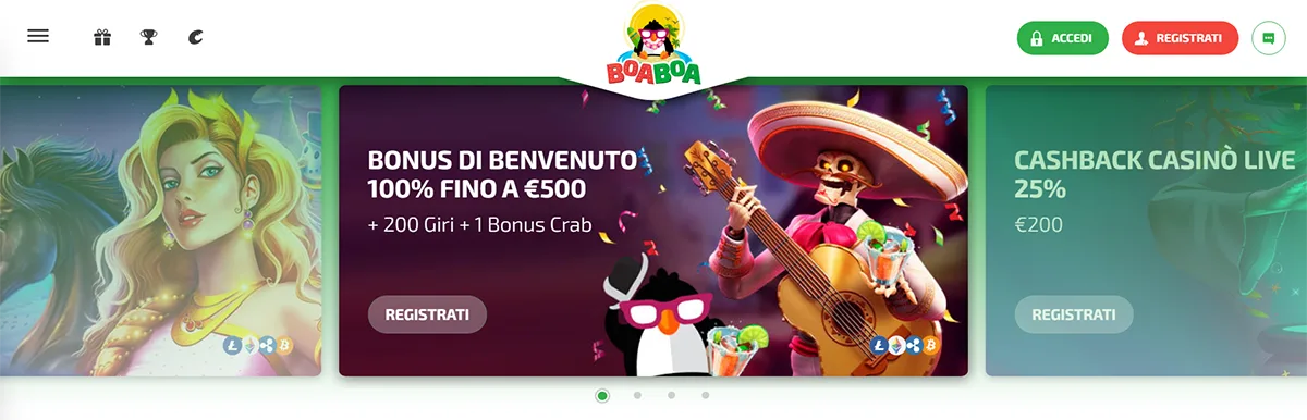 La nostra piattaforma offre bonus esclusivi fino a €500 più 200 giri gratuiti, metodi di pagamento diversificati incluse criptovalute, e un supporto clienti disponibile 24/7. Scoprirete come registrarvi facilmente, quali vantaggi vi attendono e come godere appieno dei nostri BoaBoa giochi in totale sicurezza.