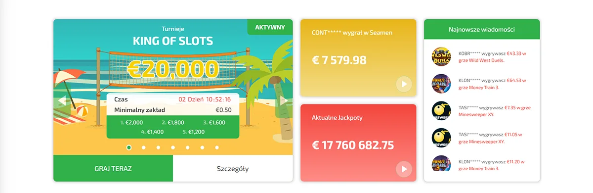 Nasze kasyno oferuje ponad 3000 gier od ponad 100 dostawców, włączając ekskluzywne sloty i najwyższej jakości kasyno na żywo Evolution Gaming.