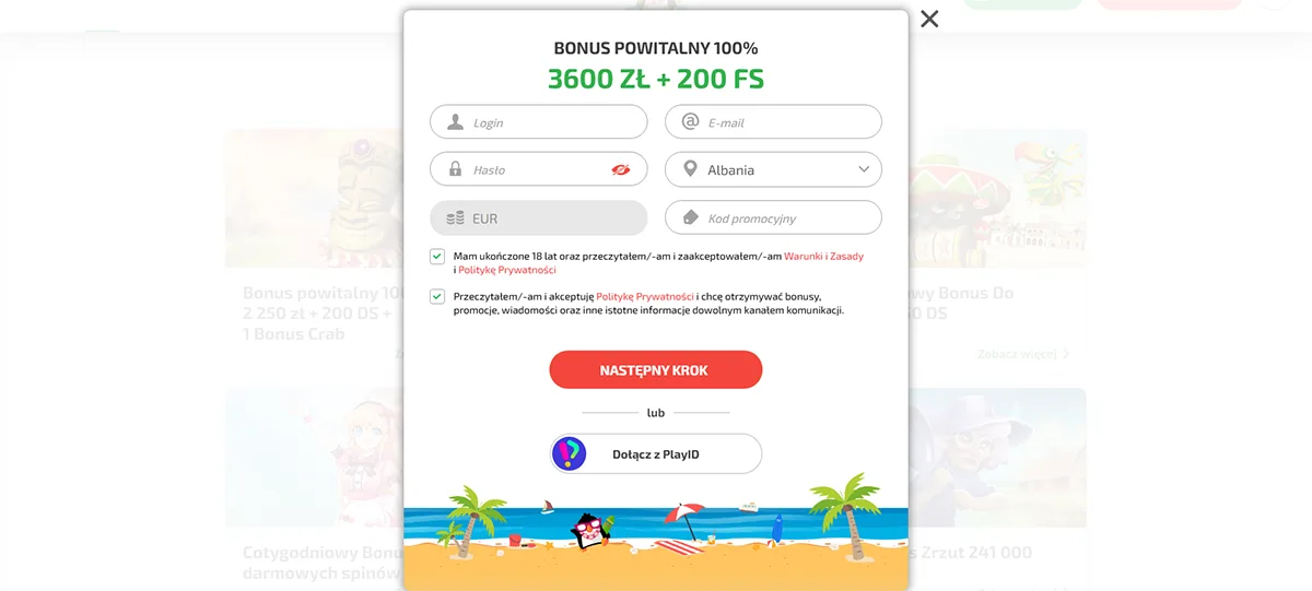 Rejestracja w kasynie BoaBoa zajmuje zaledwie kilka minut. Kliknij przycisk "Rejestracja" na głównej stronie naszej platformy.