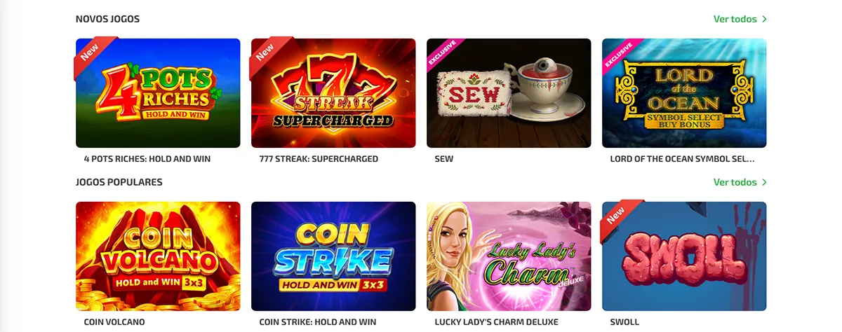 | Inovação | Jogos dos melhores provedores, interface moderna |