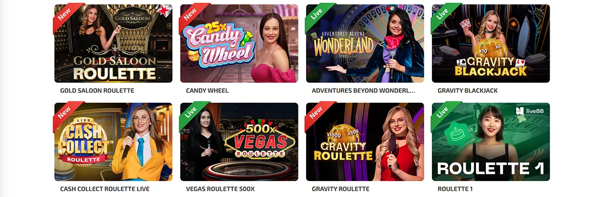 Nossa seleção ao vivo inclui Roleta Ao Vivo, Blackjack Ao Vivo, Bacará Ao Vivo e shows de jogo exclusivos. Todos os jogos funcionam perfeitamente em dispositivos móveis e desktop.